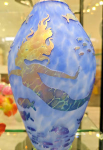 Lindsay Art Glass - Etched Mermaid Vase 10" Height
